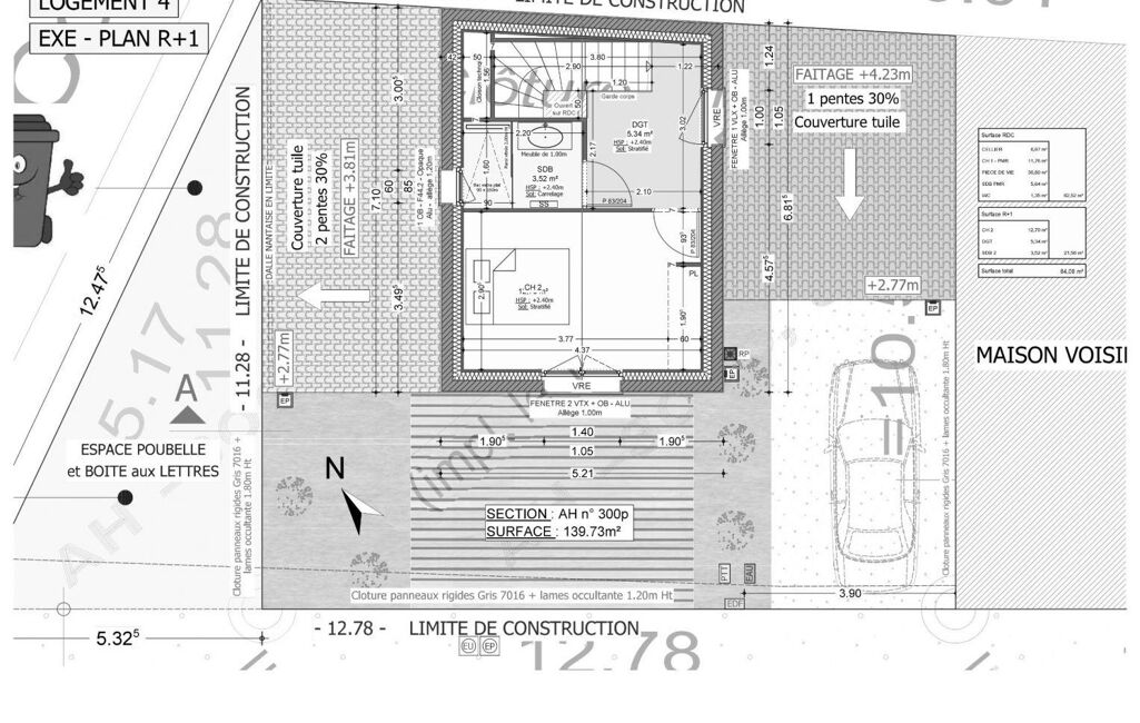 • Superficie terrain : 140 m²