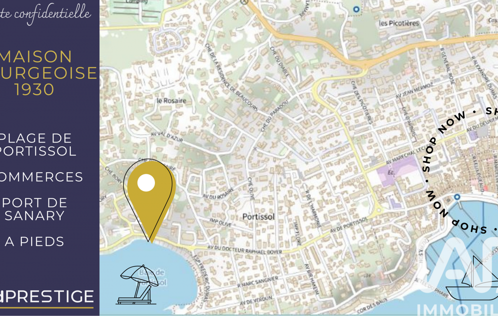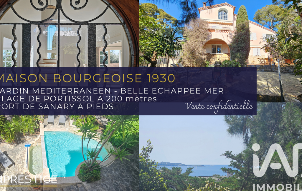 iad France - Julie Verriere vous propose: CHARME FOU - PLAGE ET PORT A PIEDS - Dans le quartier très prisé de Portissol, nichée au cOEur de son jardin intimiste et luxuriant où les essences méditerranéennes rivalisent de beauté avec le chant des oiseaux, la maison bourgeoise pleine de charme attend une famille éprise de nature, de mer et de l'art de vivre du 'tout à pieds à Sanary' !