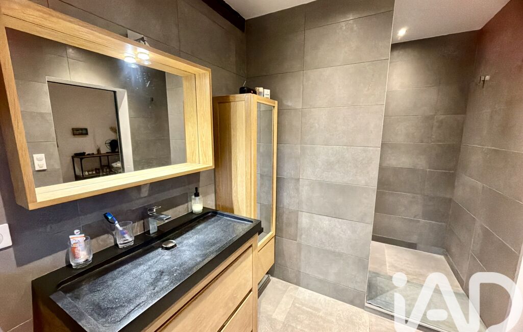 Grande salle de bain complète avec baignoire balnéo, douche à l’italienne et double vasque