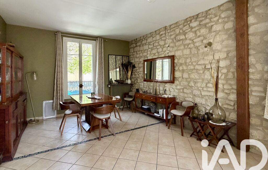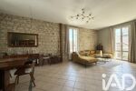 Au rez-de-chaussée, une belle pièce de vie lumineuse de 35 m² environ accueille un double salon / salle à manger, avec mur en pierre, apportant cachet et authenticité.