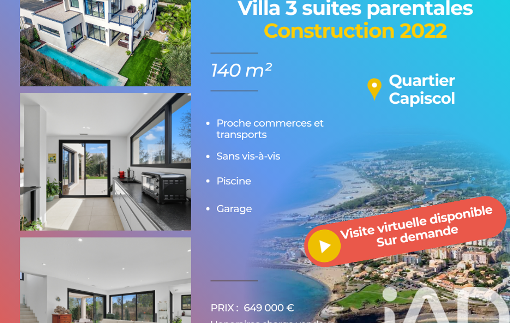 iad France - Karim Mahmoud vous propose: Villa d’architecte 140 m² – Prestations de luxe