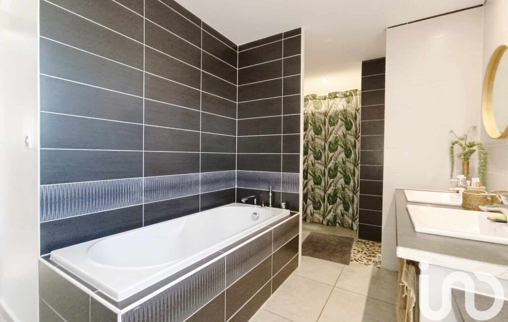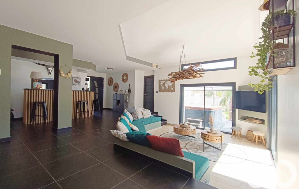 Au rez-de-chaussée, vous découvrirez une vaste pièce de vie de plus de 80 m² baignée de lumière, comprenant une cuisine ouverte, un séjour et une salle à manger. Cette pièce bénéficie de nombreuses ouvertures donnant, d’un côté, sur une véranda avec jacuzzi, et de l’autre, sur une terrasse ombragée par une pergola. Une chambre avec bureau attenant (facilement transformable en suite parentale), un WC séparé et une entrée complètent ce niveau.