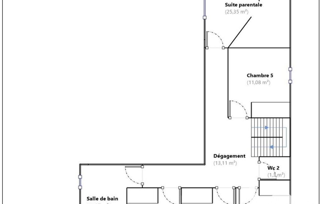 À l'étage, vous trouverez quatre belles chambres, une salle de bain, un WC séparé, ainsi qu'une véritable suite parentale pour plus de confort et d’intimité.