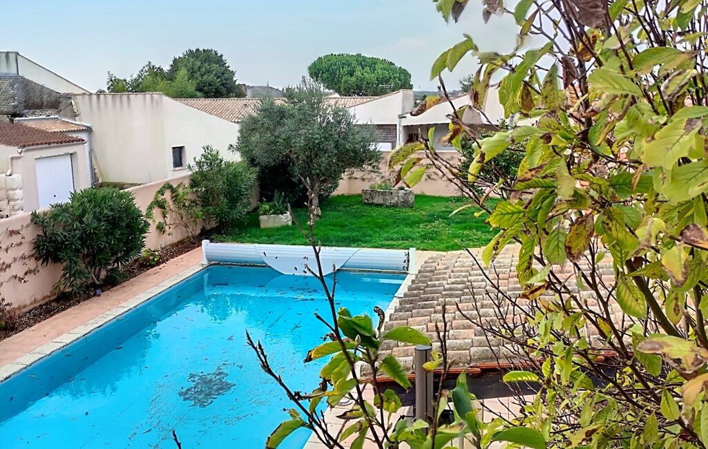 À l’extérieur, la douceur de vivre prend tout son sens avec une grande piscine de 10 x 5 m exposée plein sud, entourée d’une terrasse carrelée et ombragée par une voile. Un salon d’été couvert offre l’espace parfait pour des repas partagés en famille ou entre amis en plein air et à l’abri du soleil.