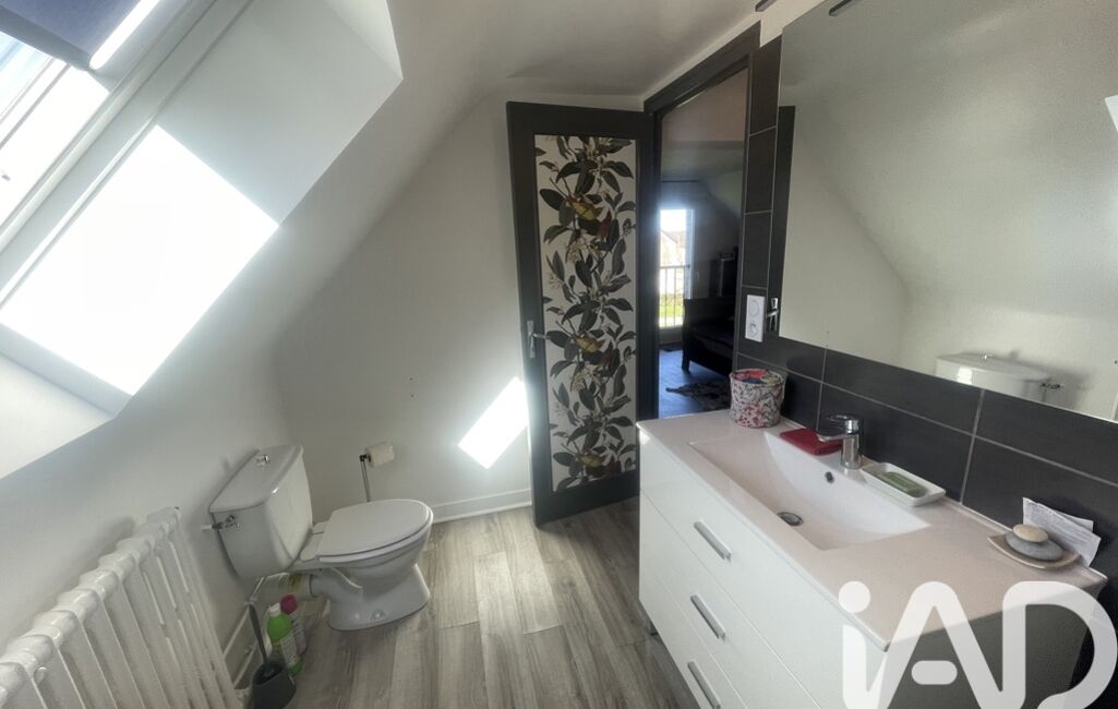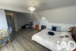 A l’étage, le couloir dessert deux chambres de 11 et 17 m2, une salle de bain avec un WC.