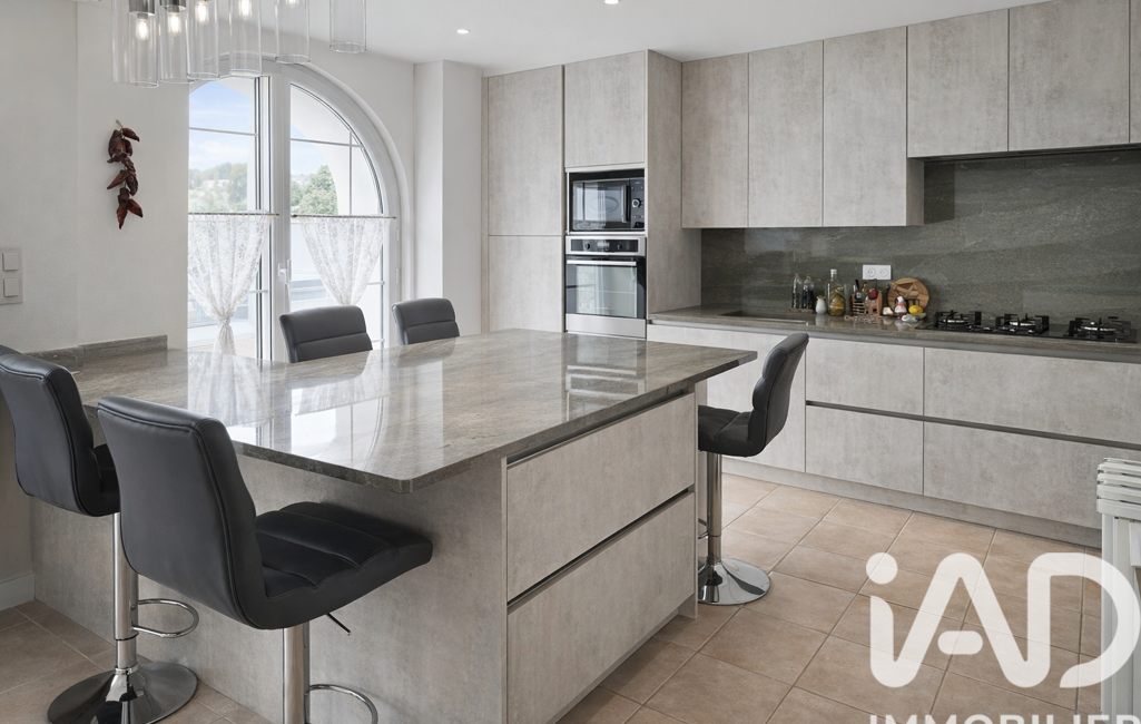 Côté extérieur, la maison dispose d'un grand garage attenant et d'un espace de stationnement pratique pour vos véhicules. Une grande terrasse et un balcon exposé sud est vous permettent de profiter de la vue dégagée sur la montagne environnante.
