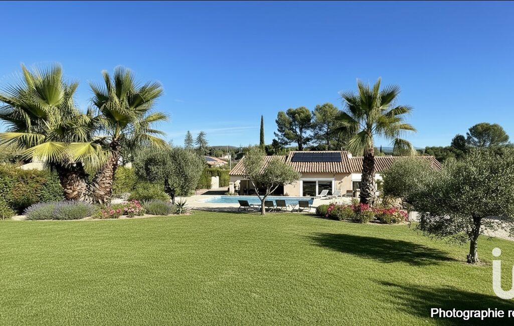 iad France - Nicolas Renouf vous propose: Dans un quartier résidentiel en impasse, belle villa provençale de 150 m² de plein pied, avec piscine carrelée de 10 x 5 m, sur terrain arboré de 2000 m². Idéalement située dans un environnement parfaitement calme, elle saura vous séduire par ses beaux volumes, ses prestations modernes, son confort et son agencement bien pensé.