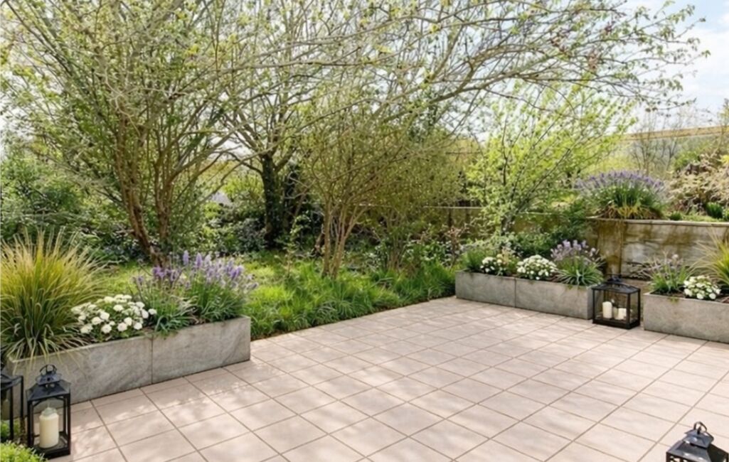 Terrain clos et arboré de 291 m² avec terrasse et puits.