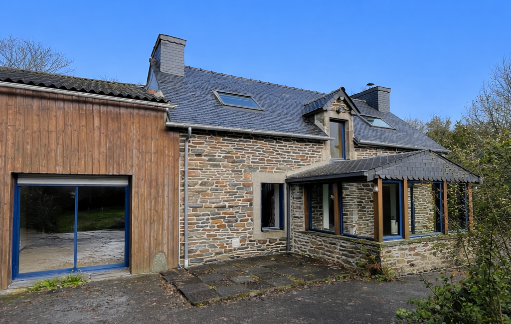 Une longère en pierre, couverte en ardoises d’une surface habitable d’environ 109 m², comprenant :