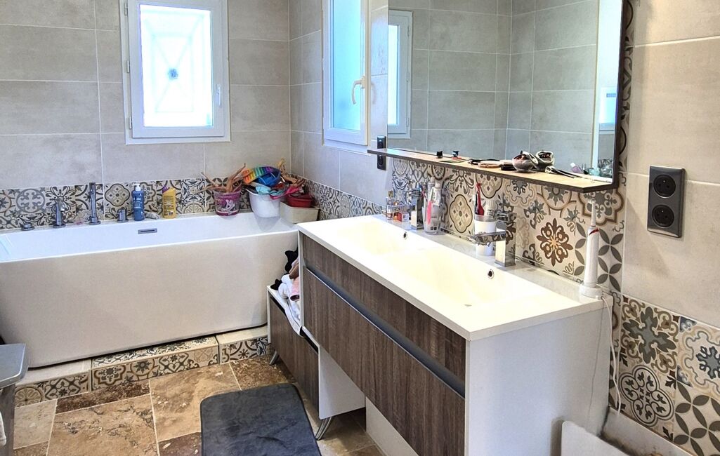 Comprenant 3 chambres spacieuses dont une suite parentale (dressing, salle de bain avec baignoire&douche, accès terrasse), un bureau, 1 salle d'eau dans la partie enfants, 2 toilettes et un grand salon lumineux, cette maison est idéale pour accueillir une famille. La cuisine équipée offrant de larges espaces de rangement est un véritable atout. La grande terrasse desservant toute la maison est idéale pour profiter de déjeuners en plein air et des moments de détente au soleil.