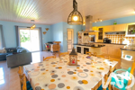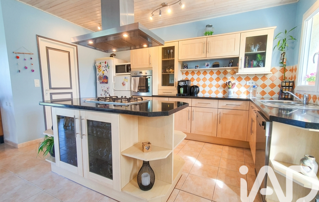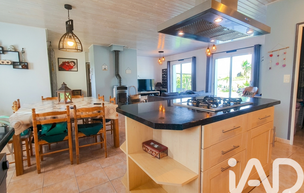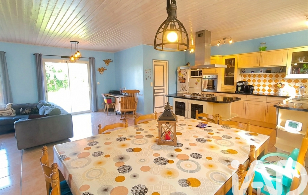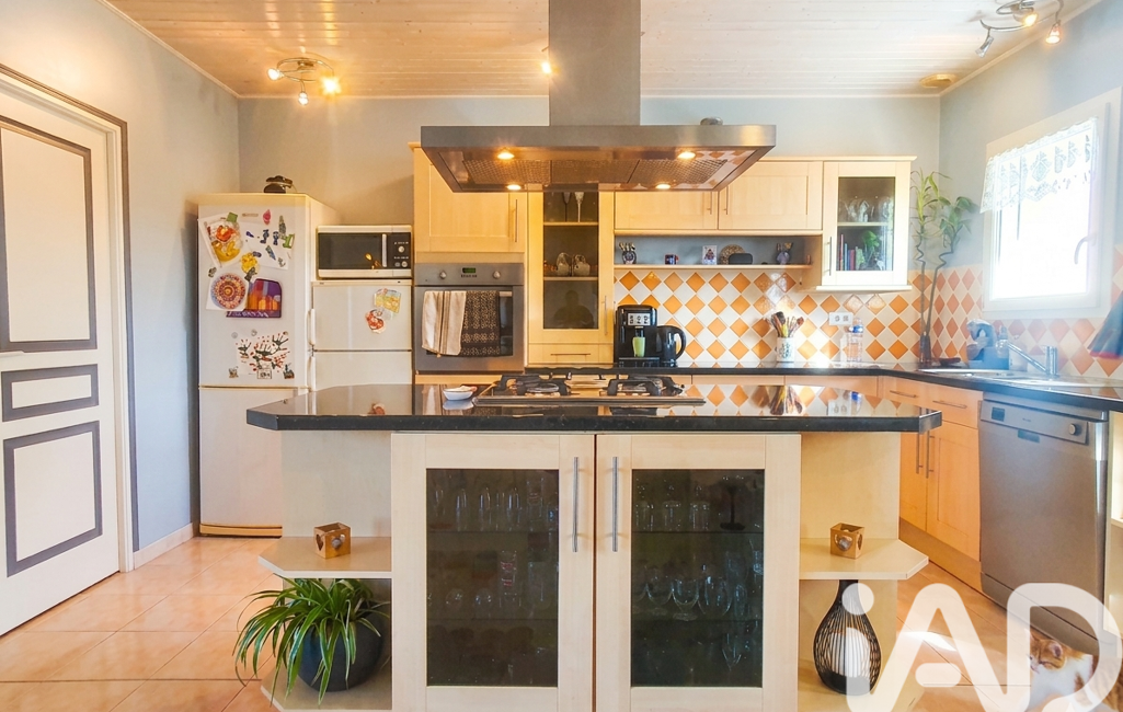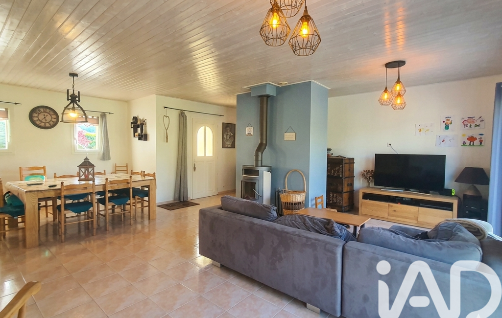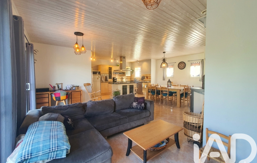 La maison de 2003 offre une vie de plain-pied totale. Dès l'entrée, vous serez séduit par une vaste pièce de vie lumineuse qui constitue le véritable cOEur de la maison. Ce séjour spacieux s’accompagne d’une cuisine ouverte aménagée et équipée pour plus de convivialité, le tout agrémenté d'un poêle à bois pour vos soirées d'hiver.