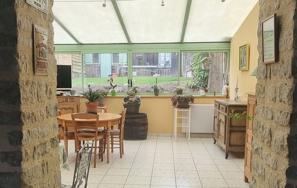 Le rez-de-chaussée vous offre des espaces de vie conviviaux : un séjour avec poêle à pellets, un salon doté d'une cheminée avec insert, une cuisine aménagée et équipée, un bureau ainsi qu'une véranda. Une buanderie et une salle d'eau complètent ce niveau.