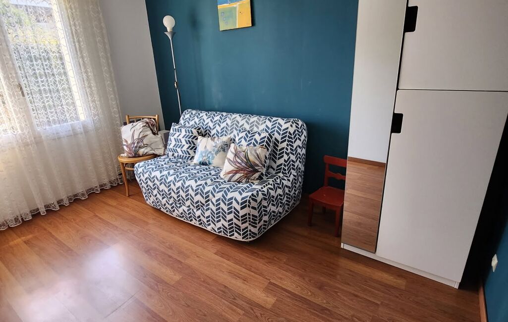 À l'étage, vous trouverez une très grande chambre spacieuse de 18m2 au sol munie d un climatiseur , une salle d'eau, des toilettes et un bureau (pouvant également servir de salle de jeux ou de chambre d amis sur une surface de 21m2 carrez ). Chaque membre de la famille pourra profiter d'un espace privatif confortable.