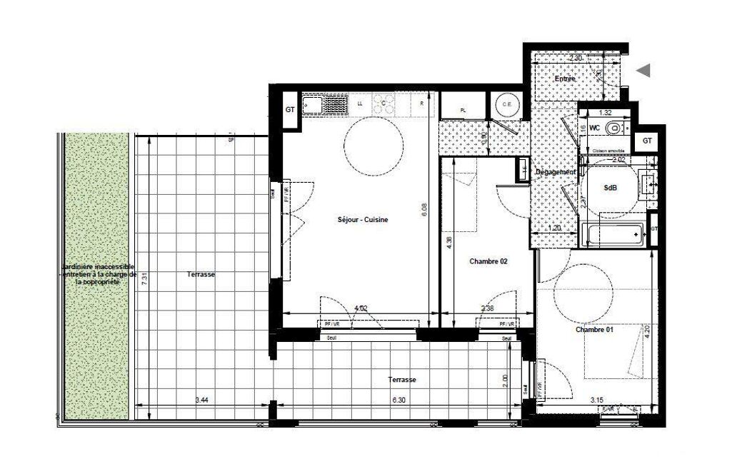 • Surface terrasse : 38 m²