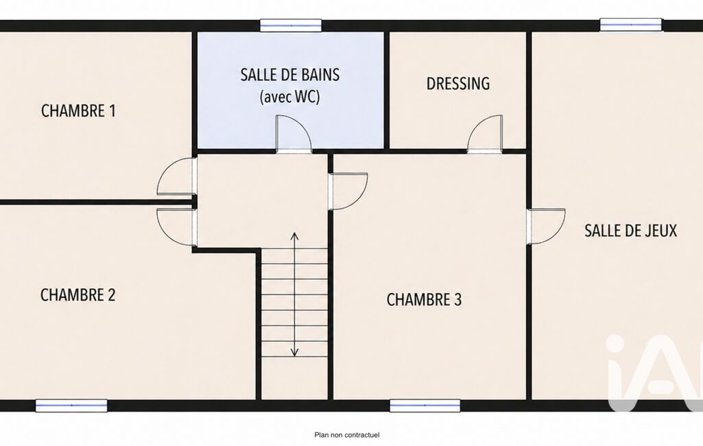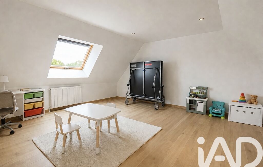 La pièce palière de l'étage dessert 3 chambres avec rangements/dressing, une confortable salle de bain avec wc ainsi qu'une salle de jeux de 35 m2 environ.