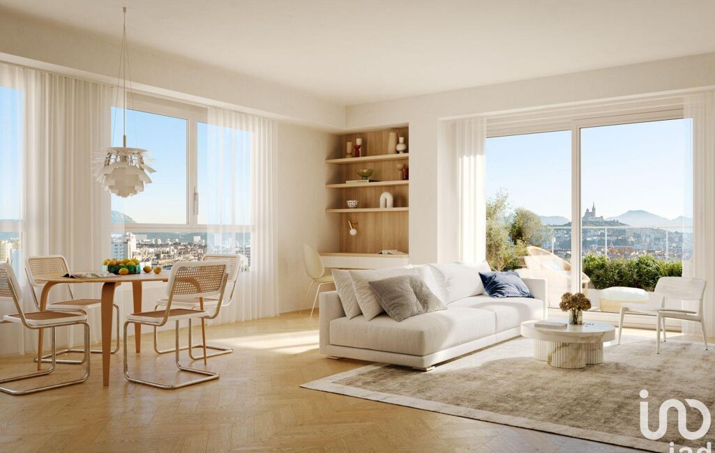 Ce duplex unique déploie plus de 200 m² environ habitables et près de 90 m² environ de terrasse, avec une vue panoramique à 180° sur la mer, le port et les toits de Marseille.