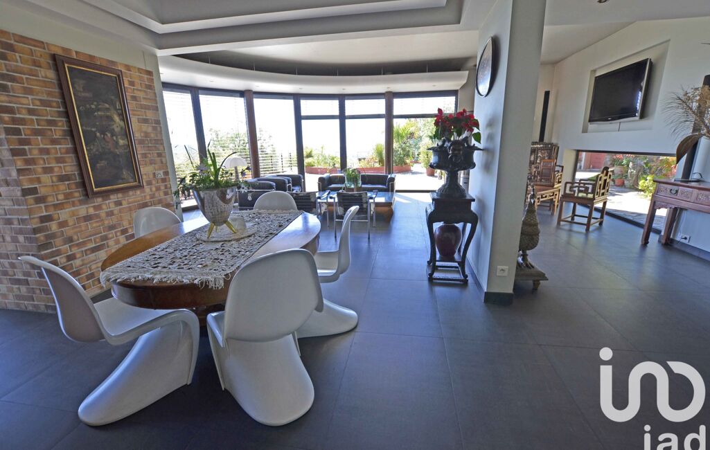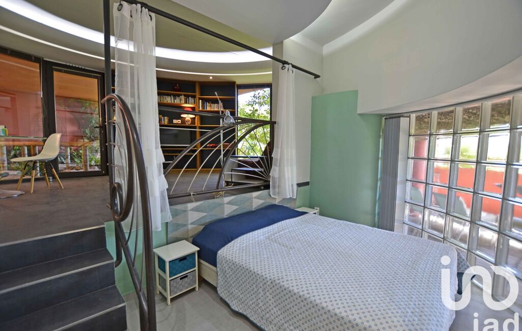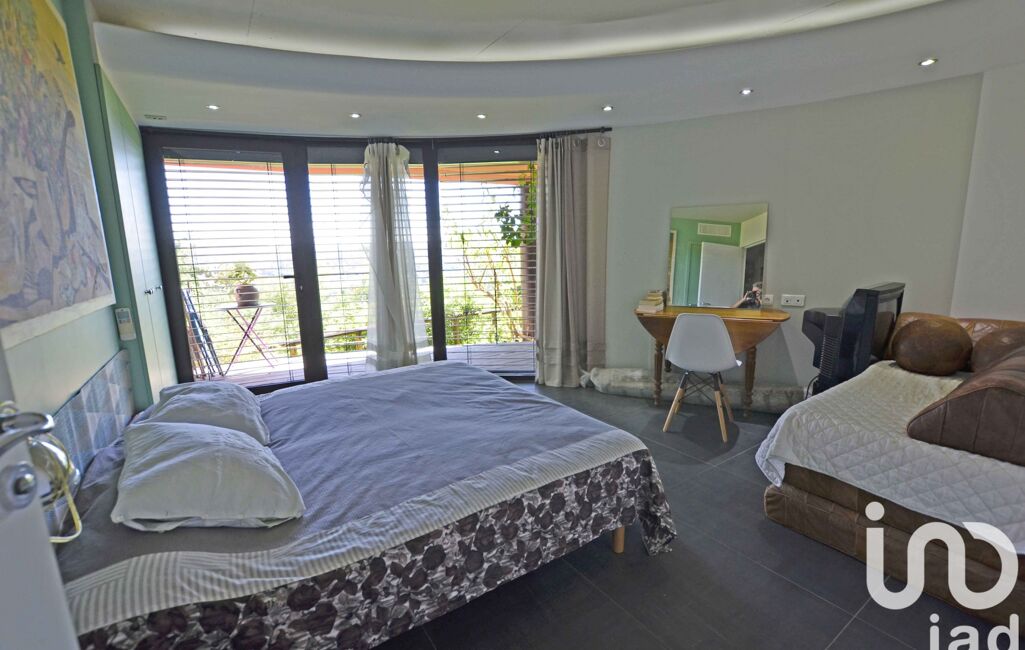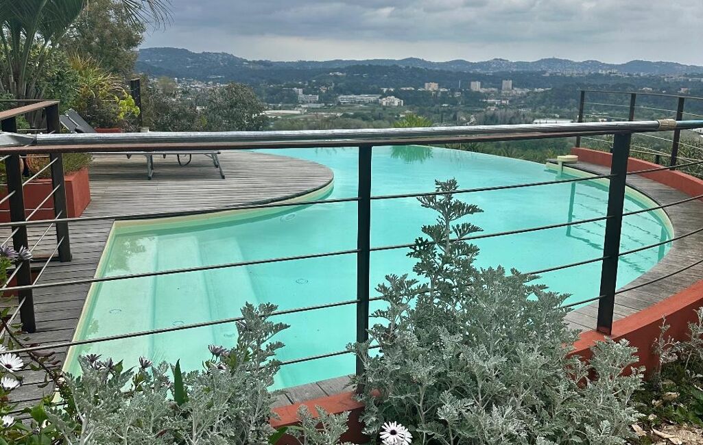 Perched on the hillside and nestled in lush greenery, this extraordinary property seems to float between sky and sea. Designed by an architect and built with reinforced concrete, it gracefully follows the natural curves of the landscape, blending organic elegance with contemporary comfort.