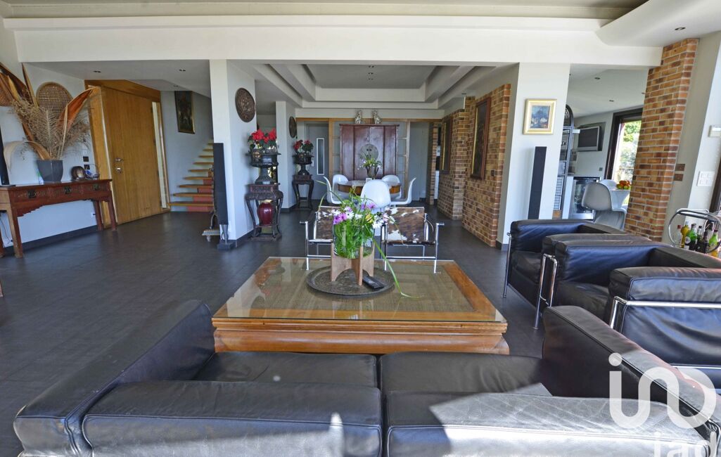 L’espace de vie principal, baigné de lumière, s’articule autour d’un vaste salon avec cheminée, d’une salle à manger élégante et d’une cuisine ouverte entièrement équipée. Tout s’ouvre sur une terrasse spectaculaire de 90 m² prolongée par une piscine au sel (50 m³), offrant une transition naturelle entre l’intérieur et l’extérieur.