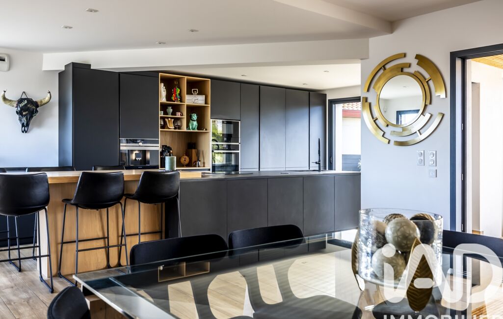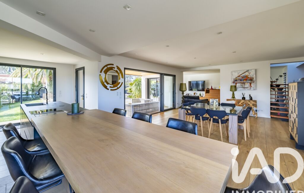 Dès l’entrée, la lumière s’impose comme fil conducteur. La pièce de vie de 108 m2 s’ouvre généreusement sur l’extérieur grâce à de larges baies vitrées, offrant une continuité naturelle vers la terrasse exposée sud et la piscine chauffée. Un espace pensé pour recevoir, partager et profiter pleinement de chaque saison.