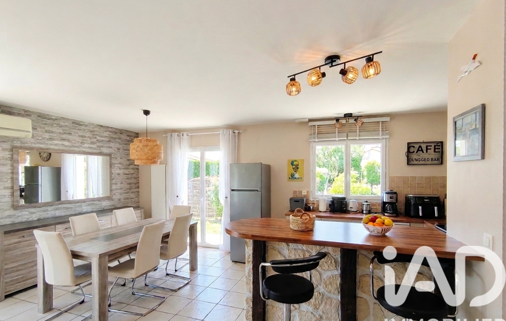 À l’extérieur, le terrain clos d’environ 600 m² permet de profiter pleinement des beaux jours. Vous y trouverez une grande terrasse, une piscine sécurisée bien exposée et un jardin arboré facile d’entretien. Un garage, deux abris de jardin ainsi qu’un récupérateur d’eau enterré (3000 L) viennent compléter l’ensemble.