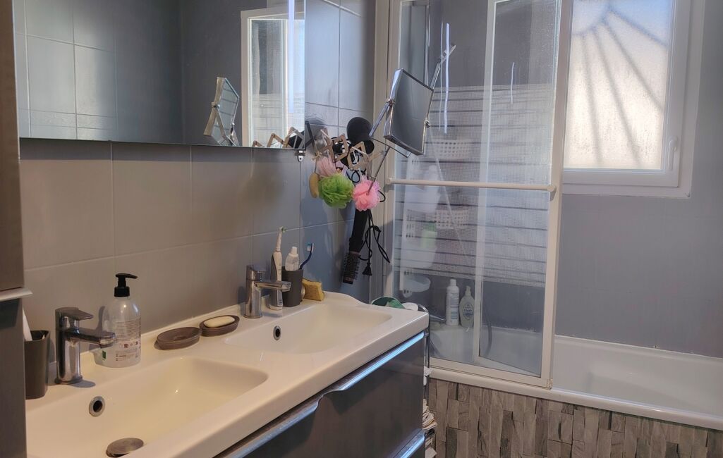 La partie nuit se compose de trois chambres (dont deux avec placards), d’une salle de bain équipée d’une double vasque, d’une baignoire et d’un sèche-serviettes, ainsi que d’un WC indépendant avec placard et son lave-mains. La maison dispose également de nombreux rangements, particulièrement pratiques au quotidien.