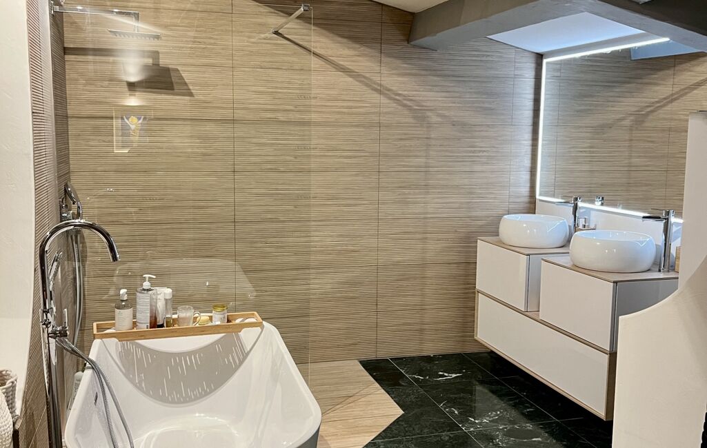 •un duplex de fonction T4 de plus de 130 m², rénové par un architecte d’intérieur, avec terrasse privative, salle de sport et piscine (9x4)