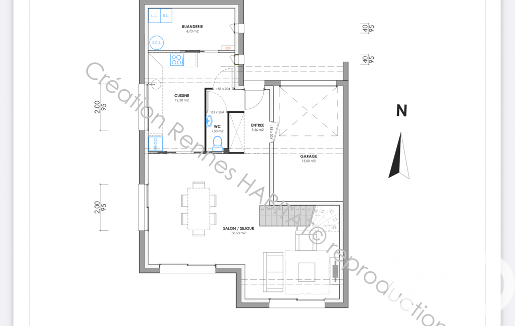 - Superficie terrain : 208 m²
