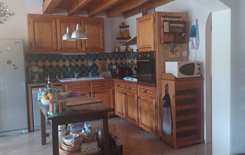 Au 1er étage: une cuisine ouverte sur la salle à manger donnant accés direct à la terrasse et piscine, trois chambre, une salle d'eau, et un wc.