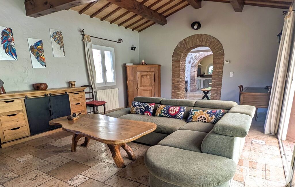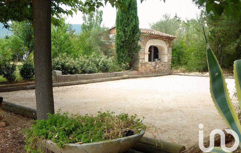 La grande terrasse ombragée offre une vue apaisante sur la piscine et ses plages, parfaitement intégrées dans leur environnement de verdure. Le jardin, agrémenté d'une belle végétation, abrite également un terrain de pétanque éclairé, trois petites annexes exploitables, un barbecue maçonné. Un ancien cabanon de pierres, cadastré et accolé à la bâtisse principale, ne demande qu'à être rénové.