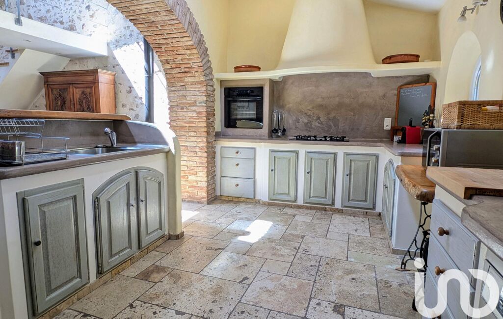 Le rez de chaussée propose un vaste espace de vie d'environ 70m2. De belles ouvertures en voûte relient la cuisine de style provençal (14m2) qui ouvre sur la salle à manger en pierres (18m2) et le spacieux salon (35m2), lui-même ouvert sur la terrasse par de larges baies vitrées. Les plafonds cathédrale, l'imposante cheminée, le sol en travertin, confèrent à cet espace un cachet rare et remarquable.