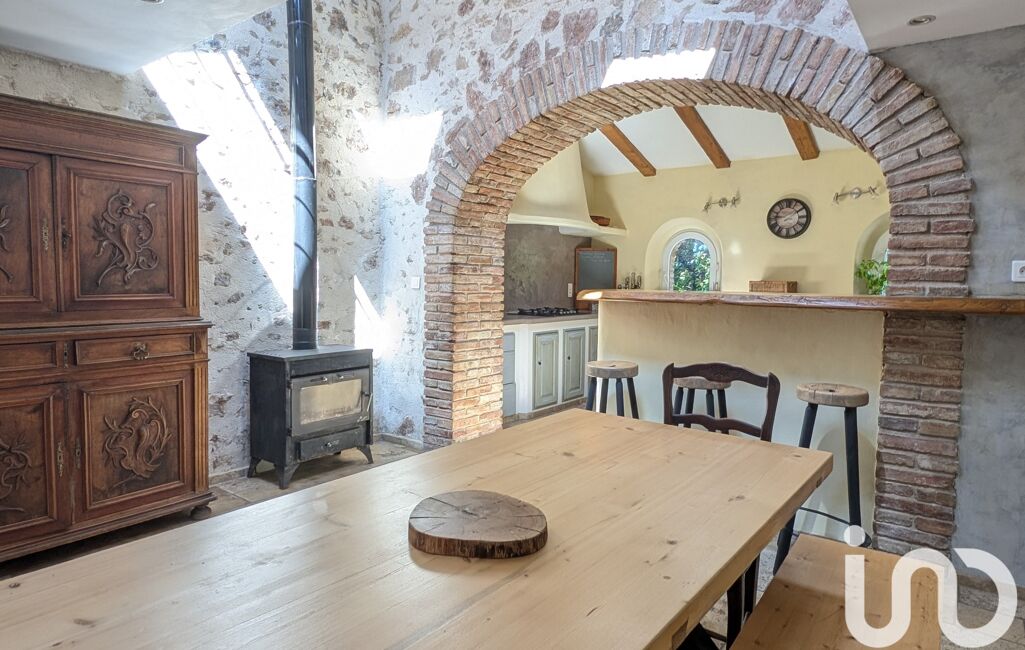 Nichée au cOEur d'un TERRAIN PLAT, CLOS ET ARBORÉ de 4500 m², cette maison atypique de 200 m², vous séduira par son charme authentique et son environnement campagne.
