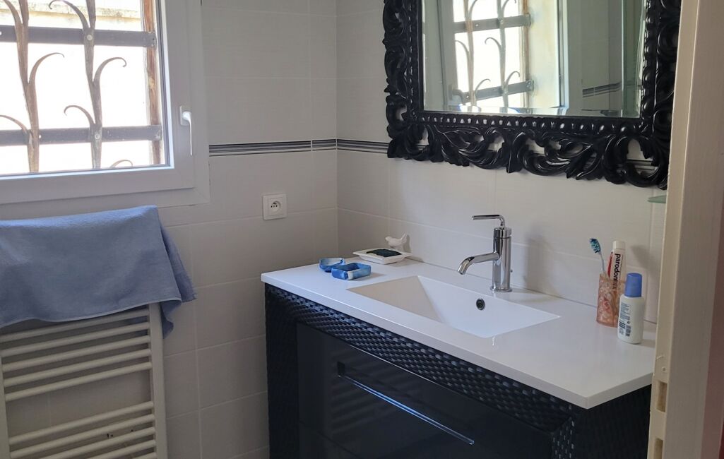 L'extérieur de la propriété est tout aussi impressionnant, avec un grand jardin arboré, une terrasse parfaite pour les repas en plein air, un barbecue en bâtis, un forage, l'eau du canal pour l'arrosage et l'eau de ville pour la maison et un garage avec porte automatique pour protéger votre véhicule. La maison est exposée plein sud, offrant une luminosité optimale tout au long de la journée. L'accès à la maison se fait par deux portails automatique