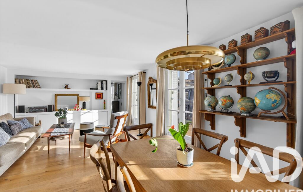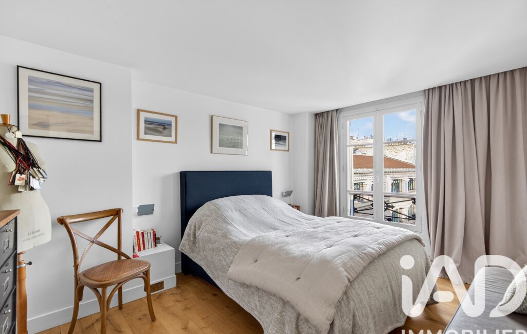 Situé au 5ᵉ et dernier étage d’un élégant immeuble haussmannien de 1919, cet appartement entièrement rénové avec des prestations haut de gamme séduit par sa luminosité exceptionnelle, son cachet, la qualité de ses matériaux et ses beaux volumes.