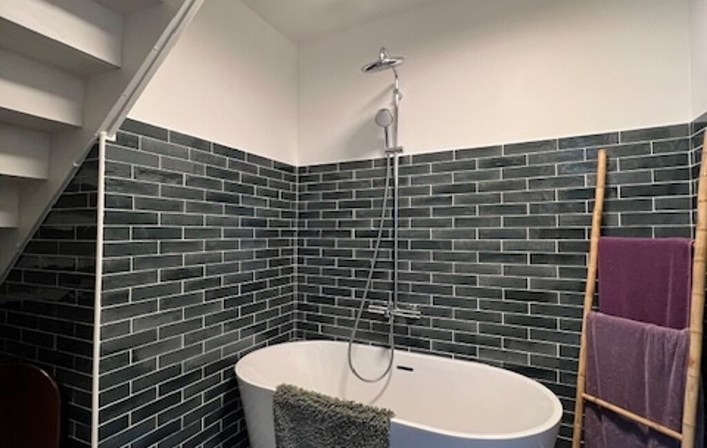 Une seconde maison propose au RDC une pièce à vivre avec cuisine ouverte aménagée et équipée. Au 1er étage, une chambre double, une seconde chambre ouverte sur le palier permettant de loger plusieurs personnes, une salle de bains, un WC.