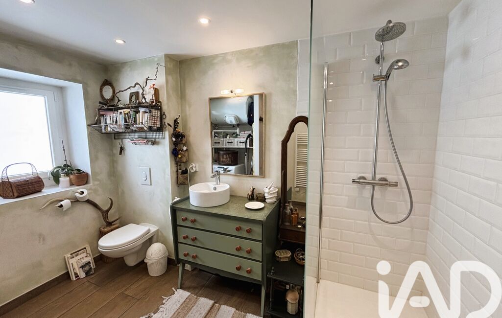 La salle d’eau moderne est équipée d’un chauffage au sol en complément du sèche serviettes et dispose également d’un coin buanderie, offrant confort et praticité au quotidien.