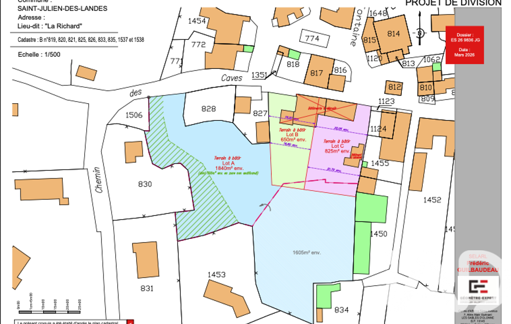 iad France - Aurélien Joyeux vous propose: Terrain Bâti (lot C) de 650 m2 - Lieu-dit La Richard, Saint Julien des Landes