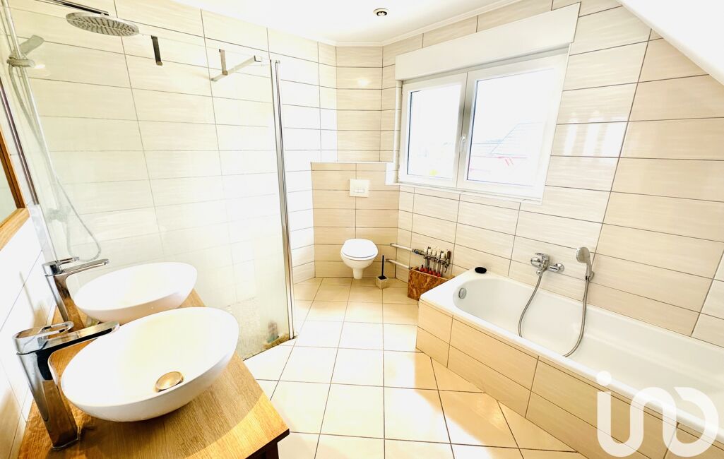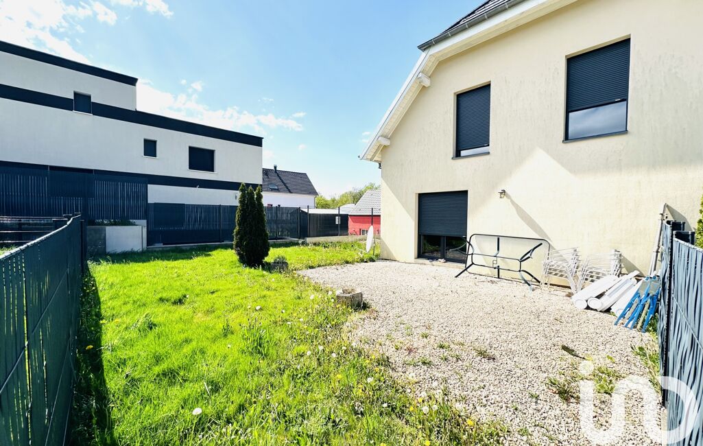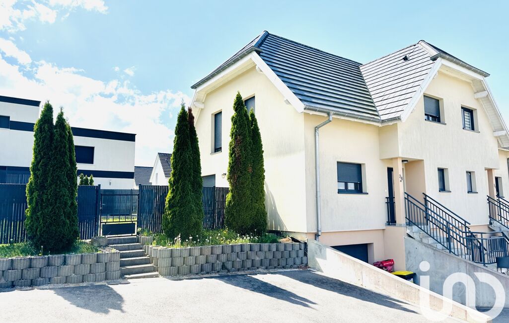 iad France - Arnaud Demuth vous propose: Maison mitoyenne en duplex de 101m2 environ de 2014 sur un terrain de 3,40 ares. Le bien se situe dans un lotissement calme de la commune. Il se compose au rdc : une entrée, une cuisine équipée, un grand salon lumineux, un W.C séparé. A l'étage 3 chambres, une salle de bain équipée. Grenier aménagé.