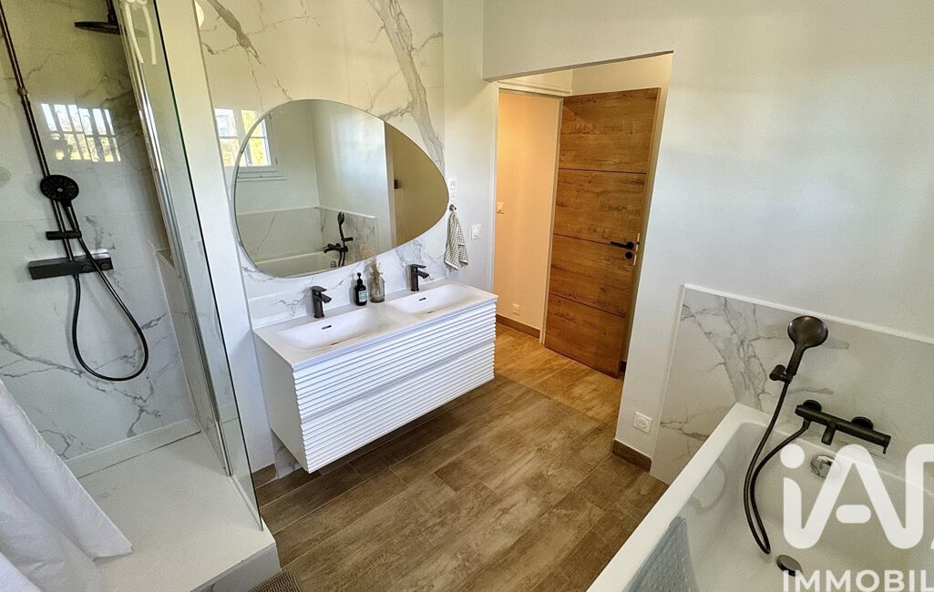 À l’étage, la suite parentale de 31 m² constitue un véritable cocon, avec son dressing intégré et ses volumes généreux. Deux chambres supplémentaires, de 17 m² et 20 m² – dont l’une dispose d’un placard – complètent l’espace nuit, accompagnées d’une salle de bain élégante comprenant baignoire, douche à l’italienne, double vasque et WC.