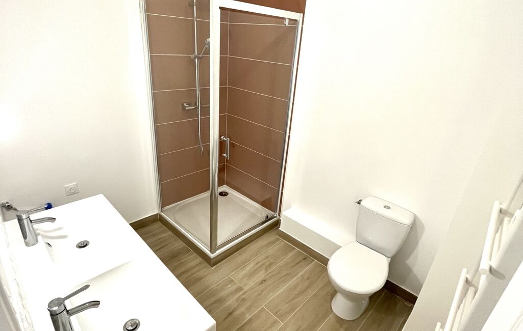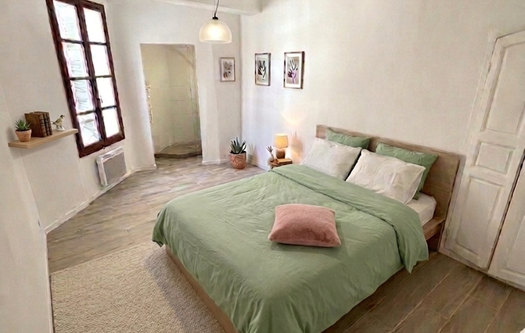 iad France - Isabelle Ilo vous propose: Dans une maison de village, appartement traversant sud/nord de 104m² au 1er étage sans ascenseur en centre-ville dans rue commerçante au calme. Il se compose d'une entrée, d'une grande pièce de vie exposée sud de 38m², cuisine MODERNE récente fermée mais ouvrable facilement, deux chambres, wc séparé, sde MODERNE, et une suite parentale de 16m ² avec sde privative MODERNE.