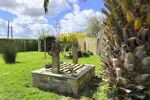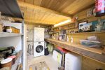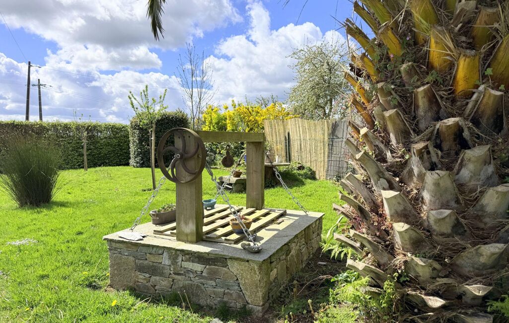 À l'extérieur la maison dispose d'un grand jardin paysager plat de 1 284m2 qui s'étend au sud et à l'ouest, renfermant des arbres fruitiers, un atelier en bois de 12m2 avec terrasse, un puits et un poulailler.