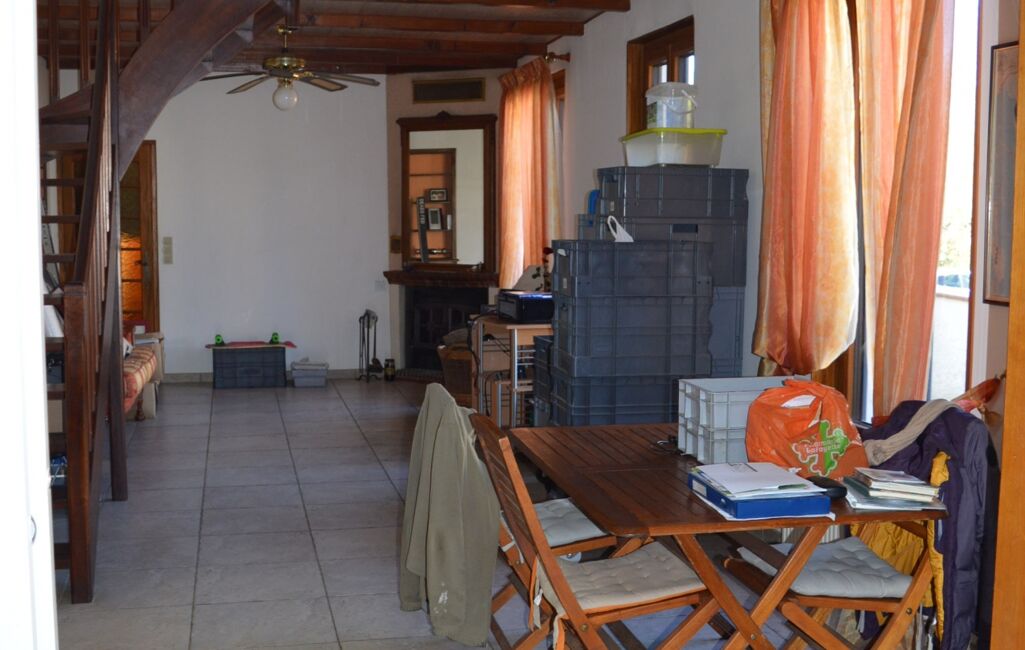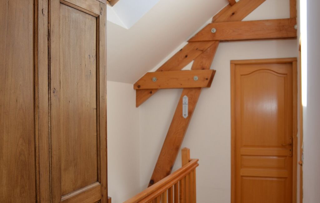 Elle se compose au rez-de-chaussée d’une jolie cuisine équipée et aménagée avec sa verrière pour une lumière chaleureuse toute la journée, d’un WC avec lave-mains, d’une spacieuse pièce de vie de 32 m² avec sa cheminée avec insert, un escalier permettra l'accès à 1 chambre et 1 bureau avec placards sous pentes et placards sur le palier