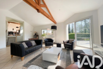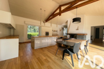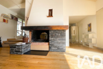 L'espace de vie de plus de 100m2 se compose d'un grand séjour s'ouvrant vers une terrasse exposée plein sud avec cuisine ouverte, îlot central, cheminée à double foyer et en contrebas d'un grand salon avec poêle à bois, bordé d'une seconde terrasse plus intimiste orientée plein ouest.