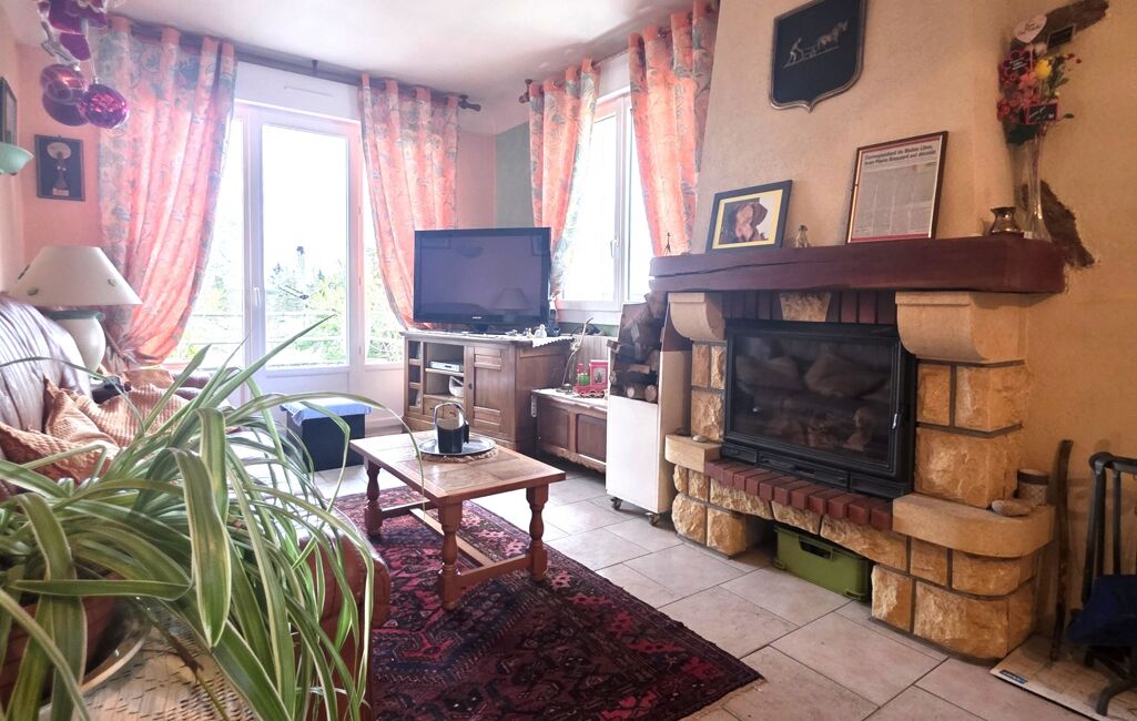 - Salon chaleureux avec cheminée insert,