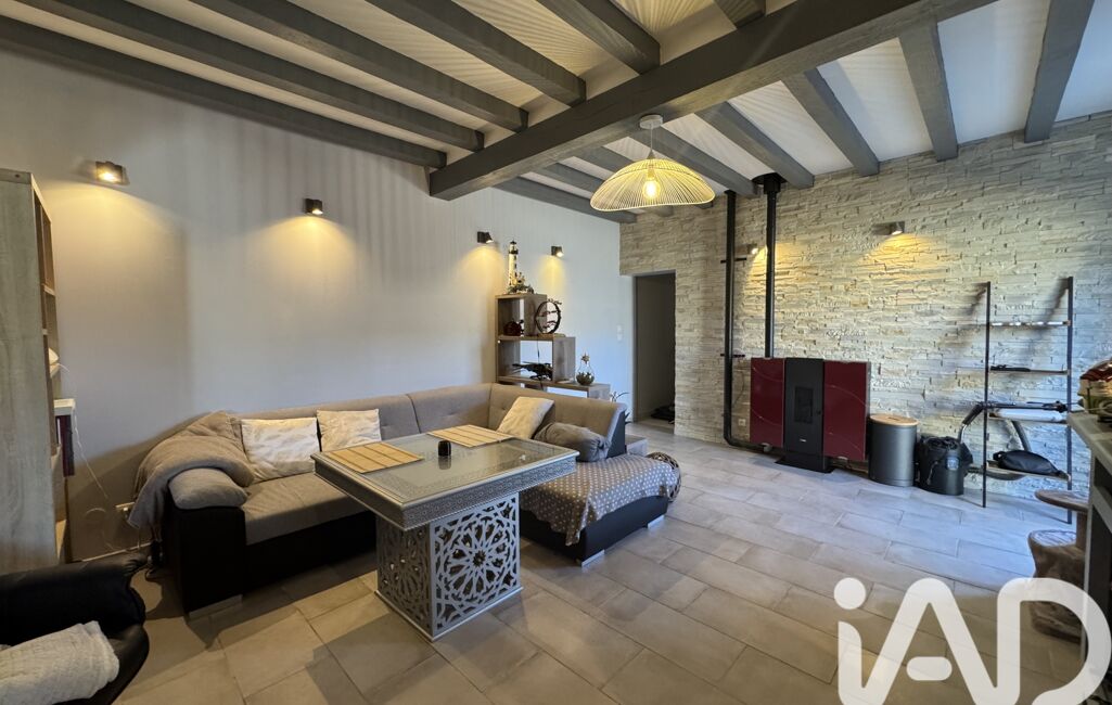 Un vaste salon avec PAC réversible et poêle à granulés.