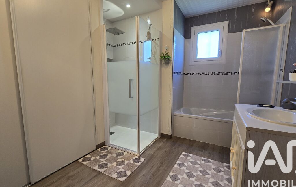 Une salle de bains complète (douche + baignoire) avec fenêtre