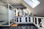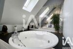 À l’étage, un palier dessert deux belles chambres avec rangements, une spacieuse salle de bain équipée d’une cabine de douche, d’une baignoire balnéo, de nombreux meubles de rangement avec double vasque, ainsi qu’un WC séparé.