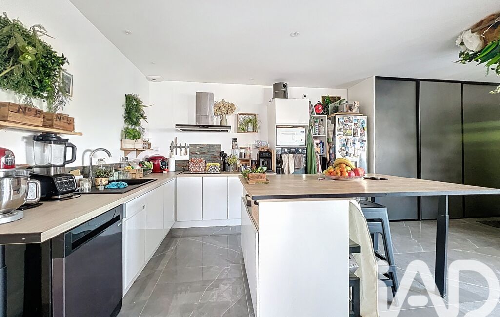 La cuisine ouverte, aménagée et équipée, s’intègre harmonieusement à l’ensemble.