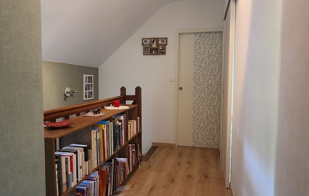 À l’étage, un palier dessert deux chambres, un bureau, ainsi qu'une salle de bain avec WC.