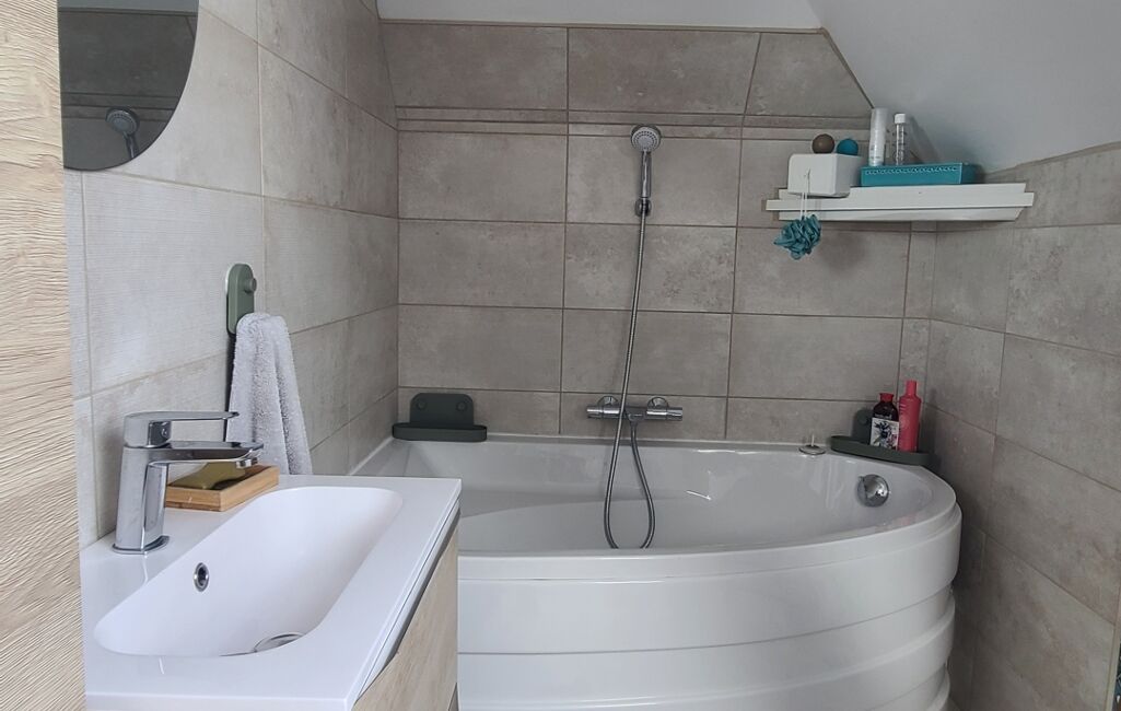 Au rez-de-chaussée, vous découvrirez une cuisine aménagée, un salon chaleureux, un séjour lumineux, une salle de douche avec wc.