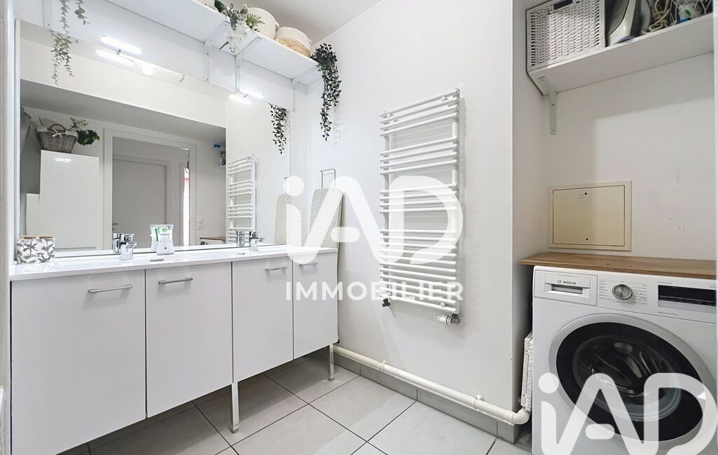 - Salle de bain avec baignoire, double vasque, sèche serviettes, espace machine à laver